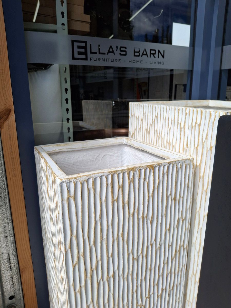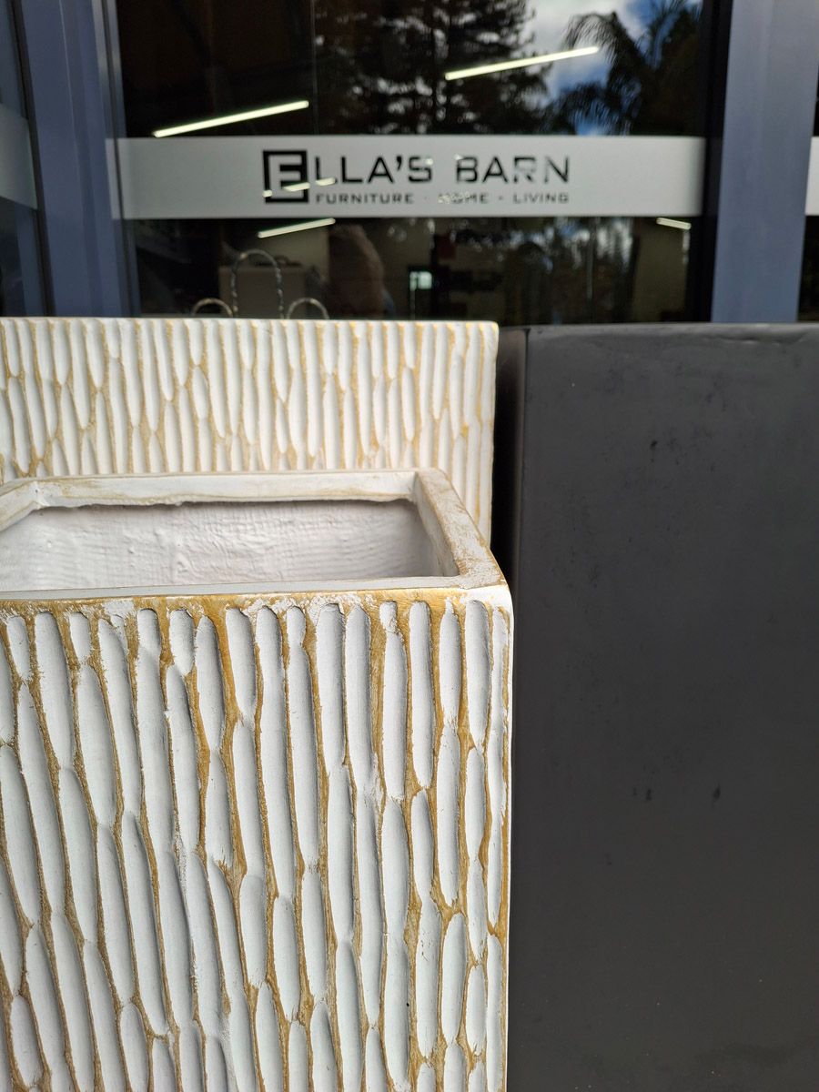 Featured here in tall square designs, including a matte charcoal finish and a textured white & gold style.