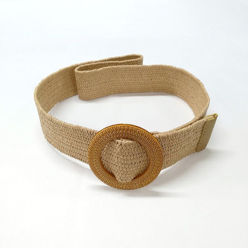 Measurements: Belt size - L 83cm x W 4cm (this belt is elasticated, so it can stretch a little) Buckle diameter - 6cm