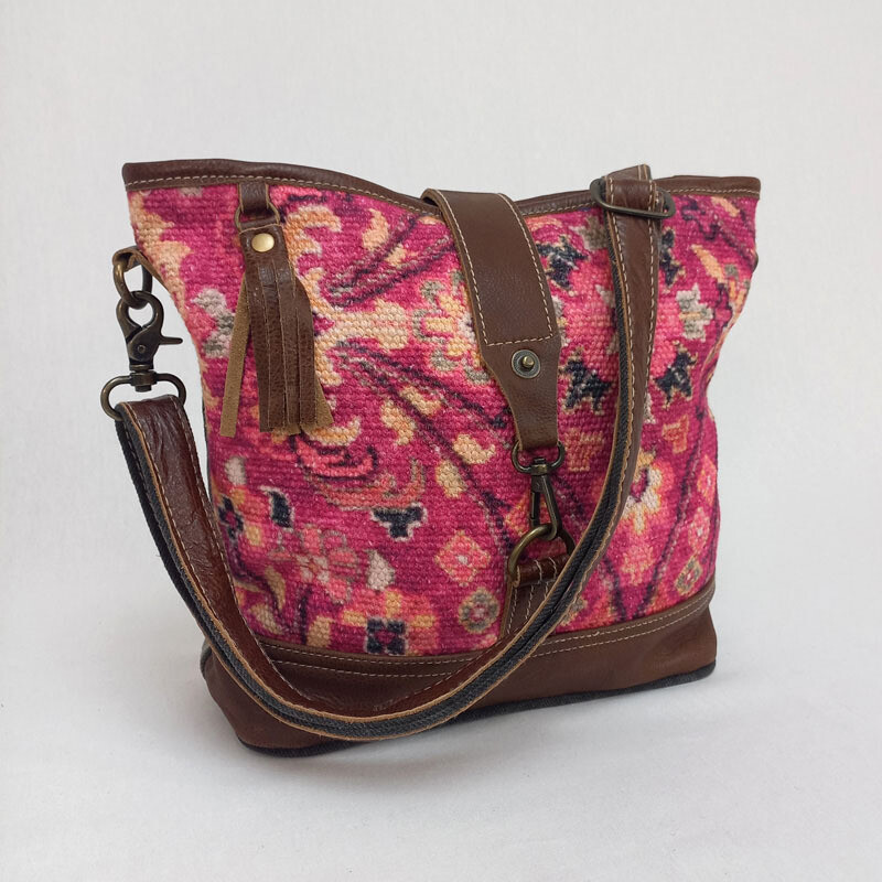 This collection utilises a variety of textures including upcycled canvas, leather, genuine hide & printed cotton.